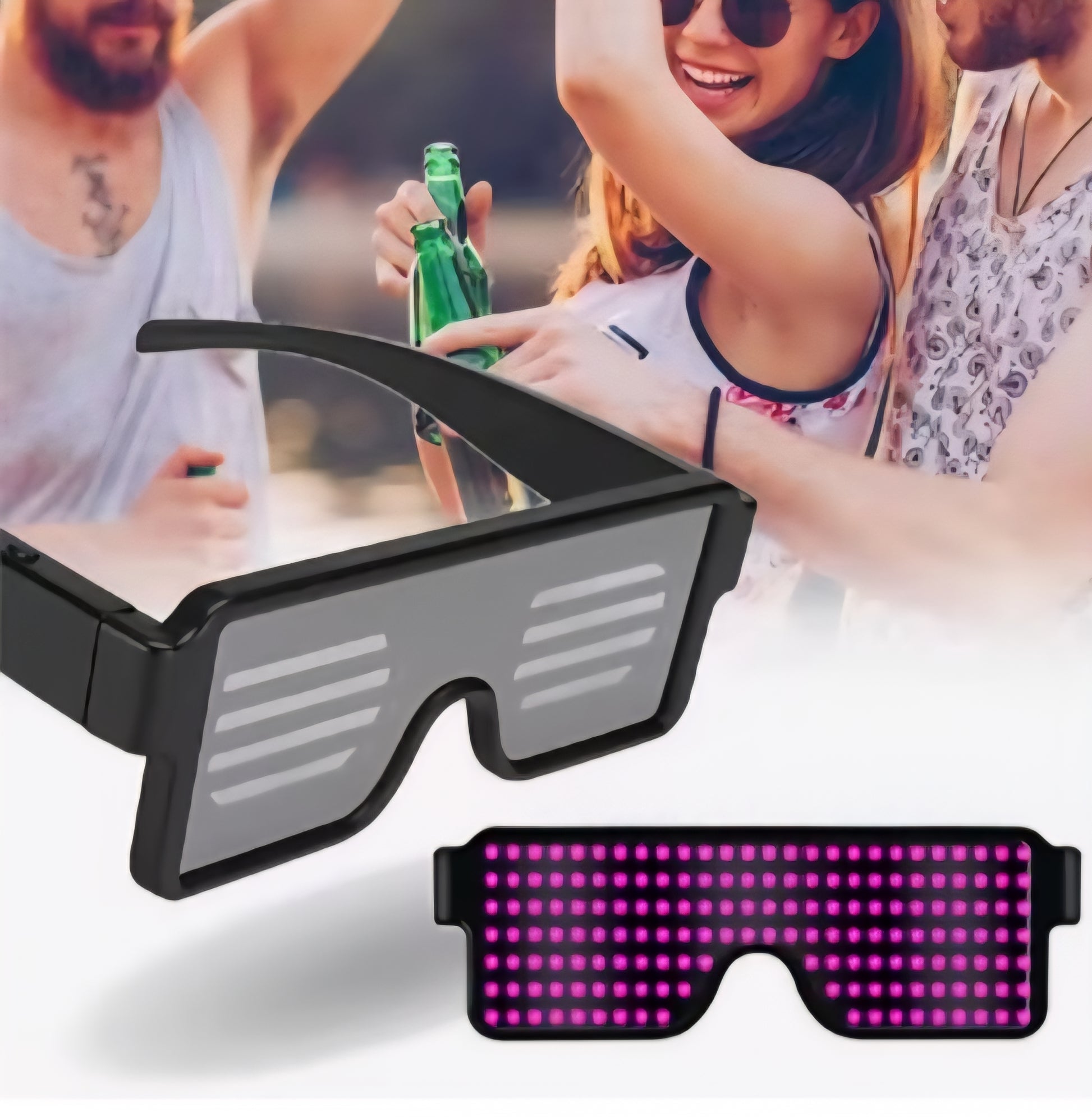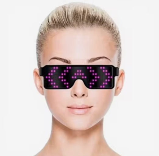 Mit Akku USB-Aufladung, Blinkende leuchtende Led Brille mit 8 verschiedenen Motiven.